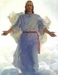 Dicho esto, se fue elevando a la vista de ellos, hasta que una nube lo ocultó a sus ojos. Mientras miraban fijamente al cielo, viéndolo alejarse, se les presentaron dos hombres vestidos de blanco, que les dijeron: "Galileos, ¿qué hacen allí parados, mirando al cielo? Ese mismo Jesús que los ha dejado para subir al cielo, volverá como lo han visto alejarse".